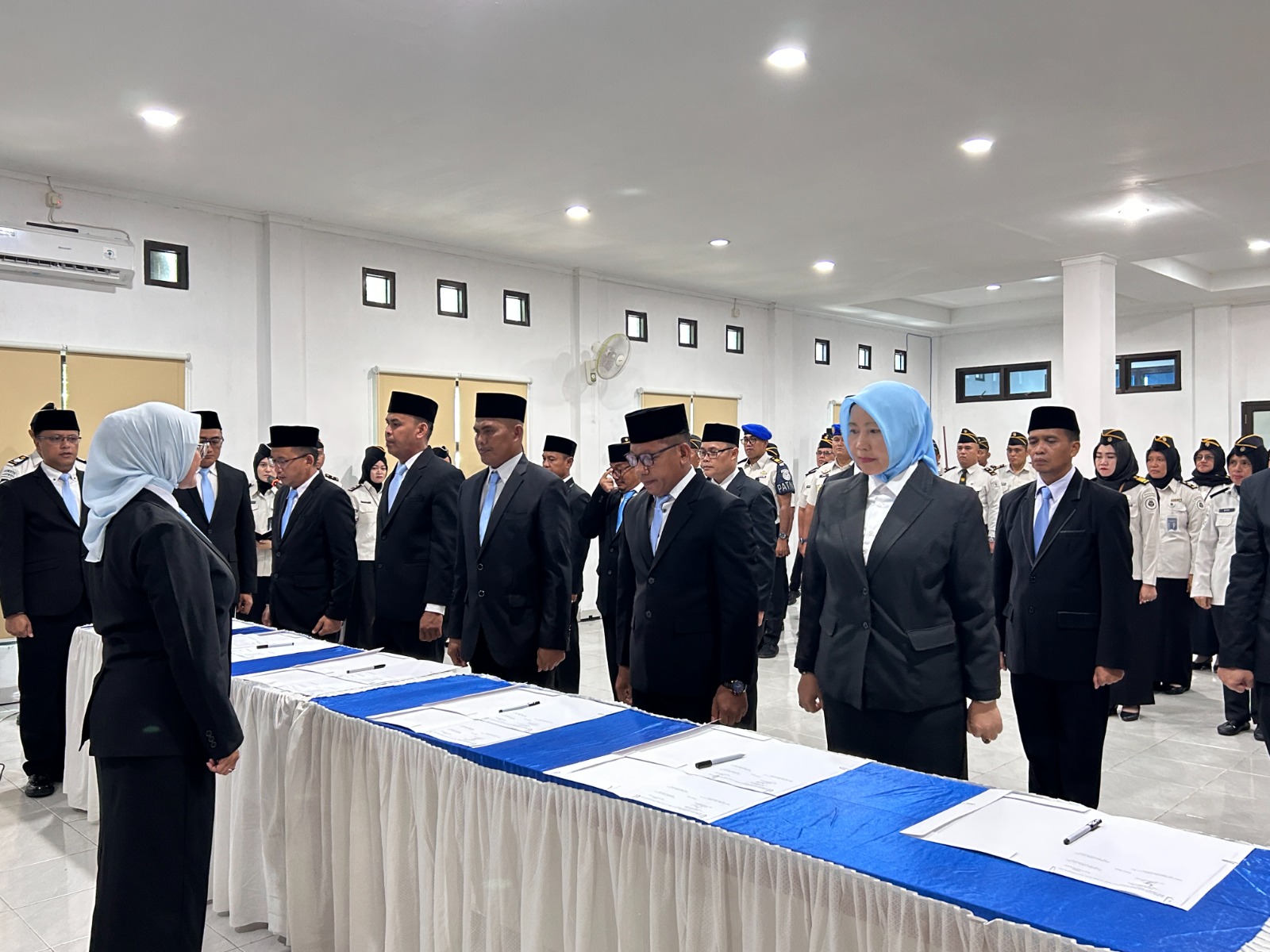 Belitung - Lembaga Pemasyarakatan (Lapas) Kelas IIB Tanjung Pandan mengikuti prosesi pelantikan 3 Pejabat Mana...